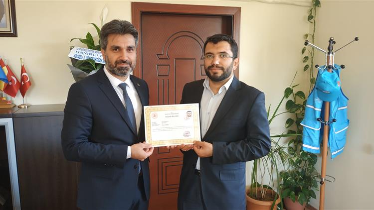 Başarılı Hizmetlerinden Ötürü Sayın Kaymakaamımız ABDÜSSELAM BIÇAK tarafından ilçe Vaizimiz MURAT KARAKAYA ya verilen BAŞARI BELGESİ İlçe Müftümüz İBRAHİM OKUMUŞ tarafından Kendisine takdim edilmiştir. Üstün gayretlerinden ötürü hocamıza teşekür ediyor ve başarılarının devamını diliyoruz.
