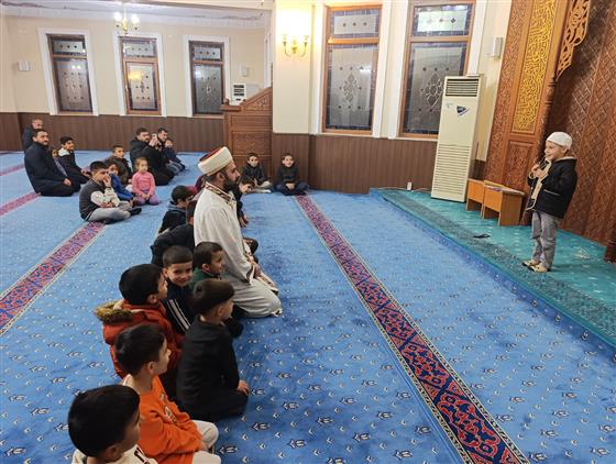 Kale Merkez Camii’nde düzenlenen buluşma, çocukların hem öğrenmesine hem de cami ortamında kaynaşmasına vesile oldu.