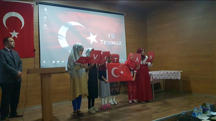 Program Yaz Kur’an Kursu Öğrencisi Aybüke Handan KORKMAZ’ın 30 Kuş Şiirini okuması, Merkez Kur’an Kurs Öğrencilerinin Hazırlamış olduğu Şehitler Ölmez İlahi sunusu, Çiğdem ALKAN adlı öğrencinin 15 Temmuz Şehitler Marşı şiirini okuması ve Şehitlik Oratoryosu ile devam ederek Yaz Kur’an Kursu Öğrencileri Emirhan ERGİN ve Elif AKYOL duasıyla son buldu.